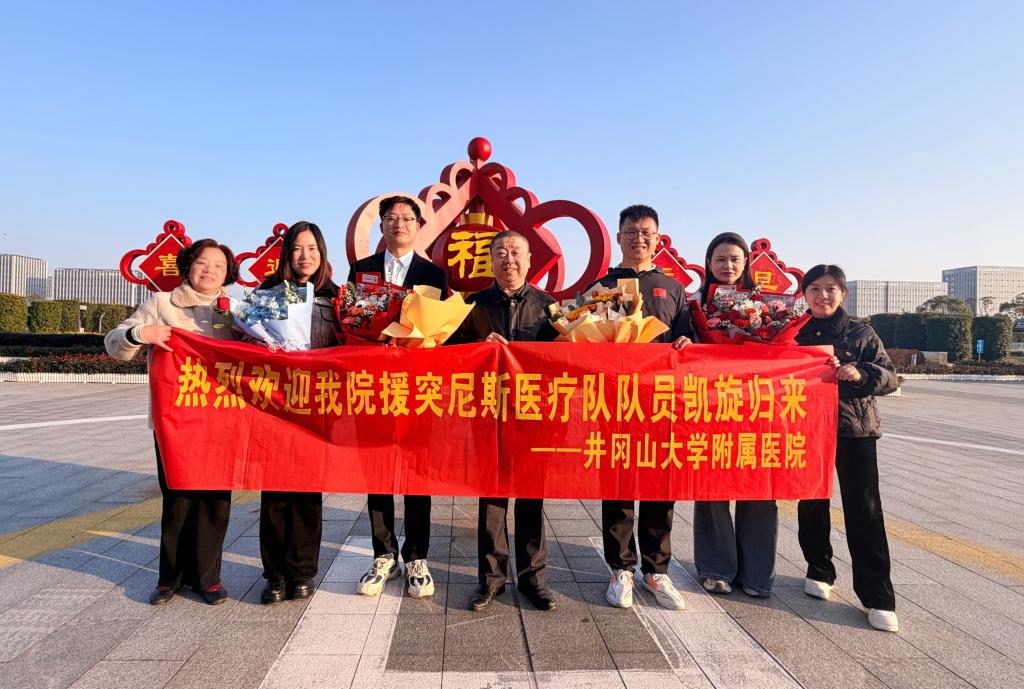 12月27日,井冈山大学附属医院援突尼斯医疗队队员,皮肤科主治医师贺旭文、骨伤康复科主治中医师刘传镇,在完成为期一年的医疗援助任务后,顺利返回吉安。吉安市卫生健康委领导、医院代表及队员家属专程前往吉安西站迎接。