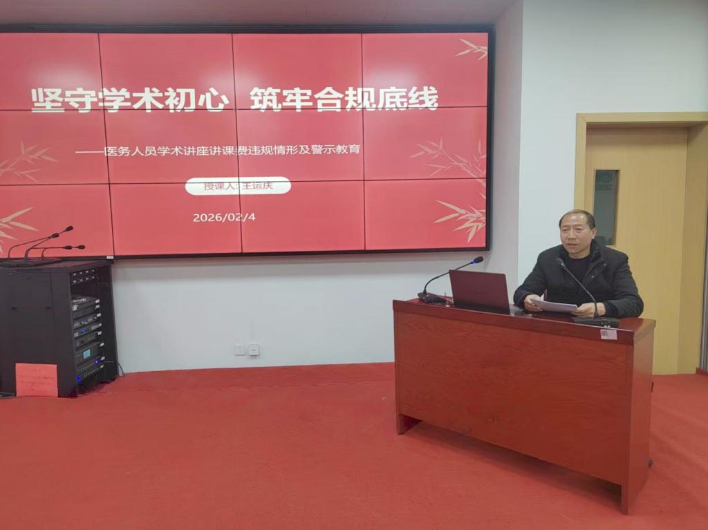 会上,医院纪委书记王运庆同志作了题为《坚守学术初心 筑牢合规底线》的专题辅导讲座。讲座系统全面,层层深入,共分七个部分:一是划定行为红线:清晰列举学术讲座、讲课活动中可能出现的各类违规表现形式,提升风险精准识别能力。二是剖析潜在危害:深入阐释违规取酬对个人职业发展、医院声誉及行业风气造成的多重损害与长远影响。三是明确违规后果:依据相关法规制度,明确各类违规行为将面临的组织处理、纪律处分及法律责任。四是恪守政策底线:系统梳理国家及行业关于学术活动报酬支付的合规要求与政策边界,提供明确行为指引。五是落实防范举措:提出避免触碰红线的具体方法与日常注意事项,强调自我约束与过程监督的重要性。六是聚焦关键环节:围绕讲课费支付的流程、标准、证明材料等核心环节,明确合规操作的关键要点。七是强化警示教育:通过剖析正反典型案例,以“身边事”警醒“身边人”,增强警示教育的针对性和震慑力。