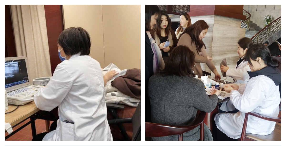 活动现场,专家团队认真、耐心地为女企业家们提供血压血糖检测、乳腺彩超检查、甲状腺筛查及个性化健康咨询服务,帮助她们及时了解身体状况,增强疾病预防意识。
