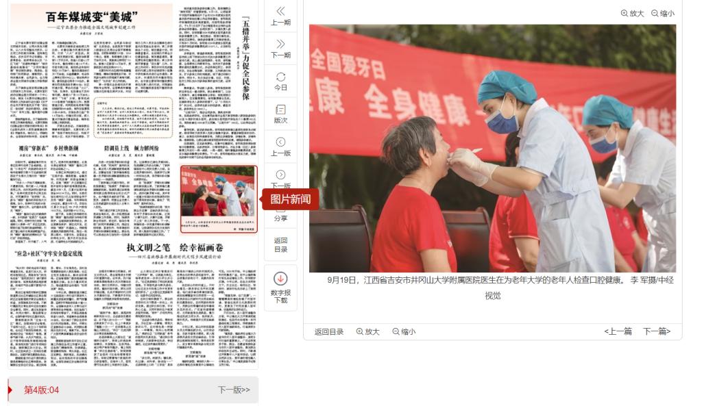 9月19日,江西省吉安市井冈山大学附属医院医生在为老年大学的老年人检查口腔健康。 李 军摄/中经视觉