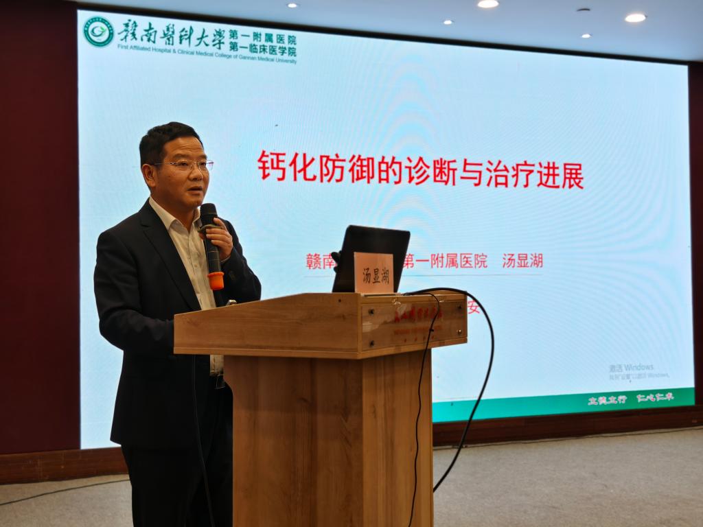 赣南医科大学第一附属医院汤显湖教授以《钙化防御的诊断与治疗进展》为题,讲述了钙化防御的流行病学、概述、临床诊断和综合治疗,并结合所在医院用药经验分享了相关药物的用药经验。