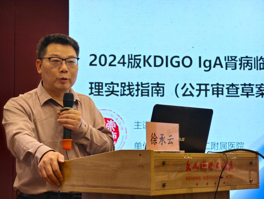 在学术交流环节,南昌大学第二附属医院徐承云教授以《2024版KDIGO IgA肾病临床管理实践指南》为题,分享了关于IgA肾病最新诊治的指南解读,深入浅出地讲解了IgA肾病最新药物治疗的机制及用药注意事项,为参会者带来了全新的思路和理念。