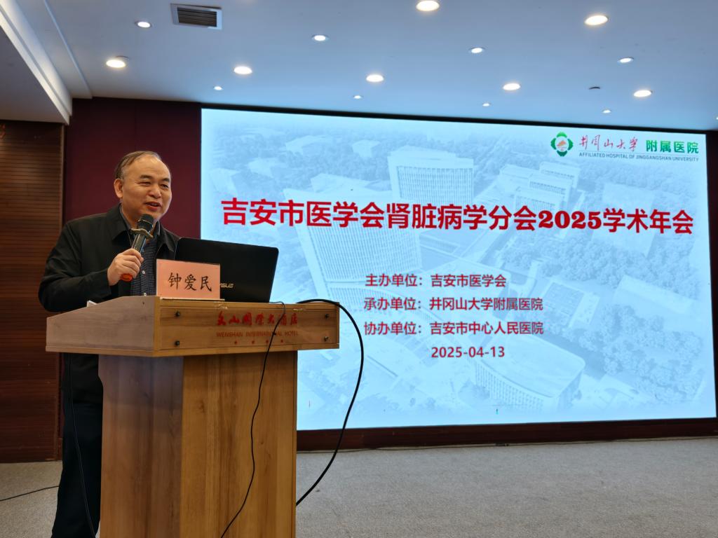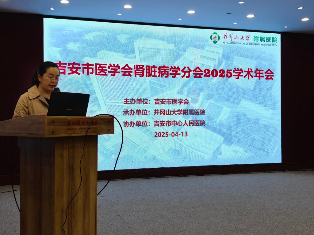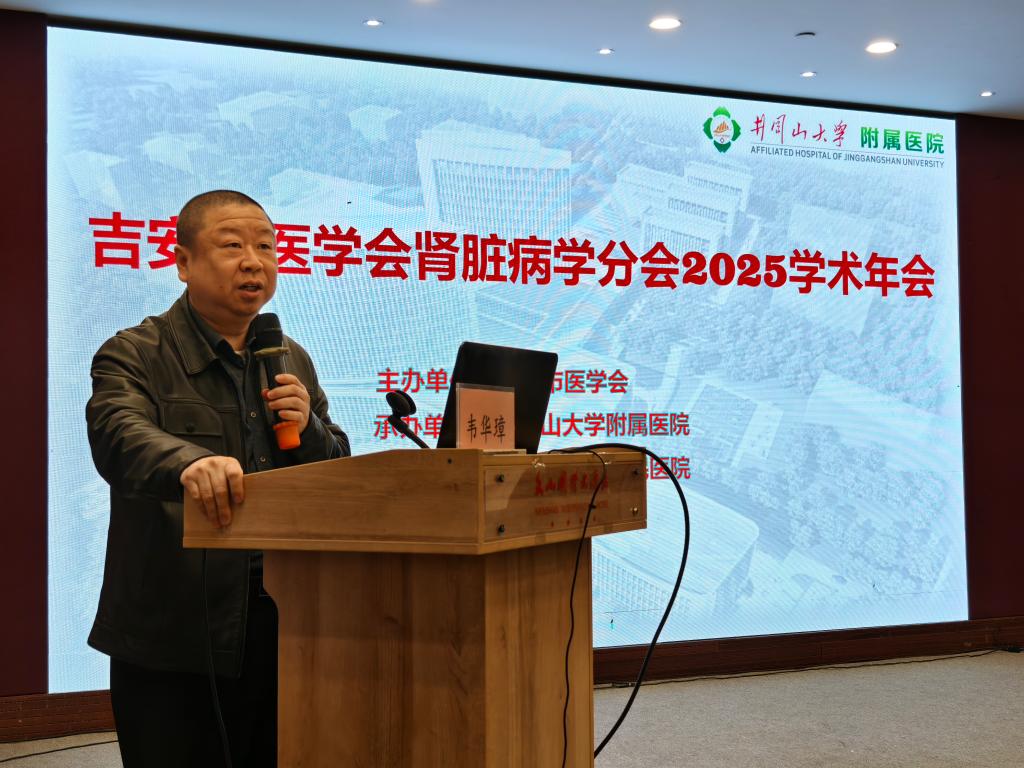 4月13日,由吉安市医学会主办,井冈山大学附属医院承办的2025年吉安市医学会肾脏病学分会三届三次学术研讨会在吉安顺利举行。江西省医学会肾脏病学专业委员会主委钟爱民教授,我院党委委员、副院长韦华璋,吉安市医学会肾脏病学分会候任主委、我院肾内风湿免疫科主任陈小丽致辞。吉安市医学会肾脏病学分会常委、我院肾内风湿免疫科副主任周振中主持。来自吉安市各级医院的120余名医护代表参加。