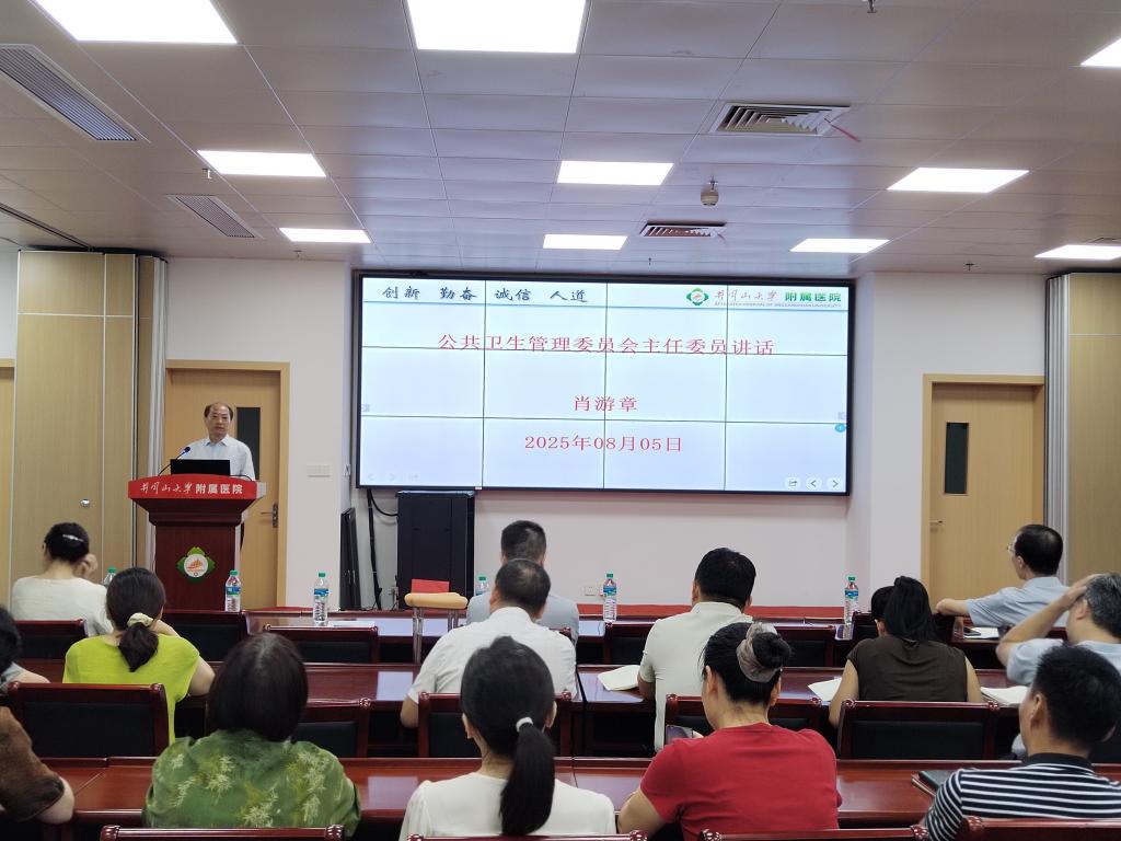 为确保医院快速响应、精准防控蚊媒传染病,降低传播风险,8月5日下午,井冈山大学附属医院在全科楼2楼学术报告厅召开2025年度公共卫生管理委员会会议,院党委书记、委员会主任委员肖游章出席会议并讲话,党委委员、委员会副主任韦华璋传达了全省基孔肯雅热疫情防治电视电话会议精神,委员会全体委员参会,党委委员、副院长、委员会常务副主任黄玲主持。