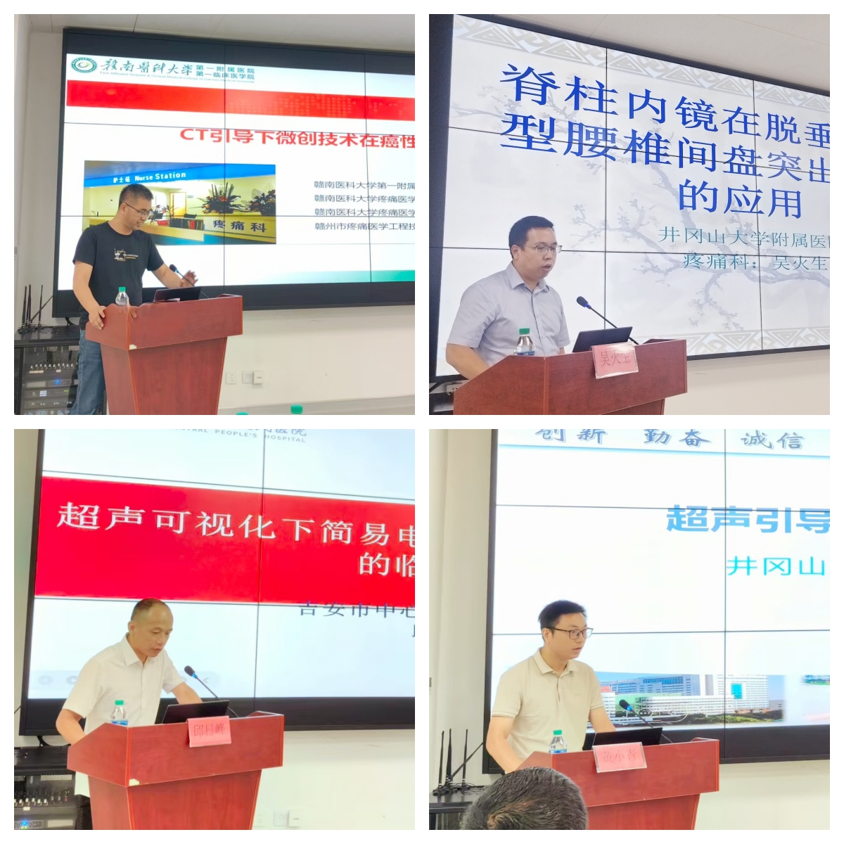 江西省人民医院疼痛科主任刘小兵、九江学院附属医院疼痛科主任王礼彬、赣南医科大学第一附属医院疼痛科副主任医师温新院、井冈山大学附属医院疼痛科主任吴火生、吉安市中心人民医院疼痛科主任邱日峰及井冈山大学附属医院疼痛科主治医师黄小青等专家,围绕鞘内泵治疗慢性疼痛、脊柱内镜技术在颈腰椎疾病中的应用、CT引导下癌性镇痛微创技术、超声引导下神经调节与松解治疗等主题进行分享,多维度展现了疼痛医学领域的技术革新成果。
