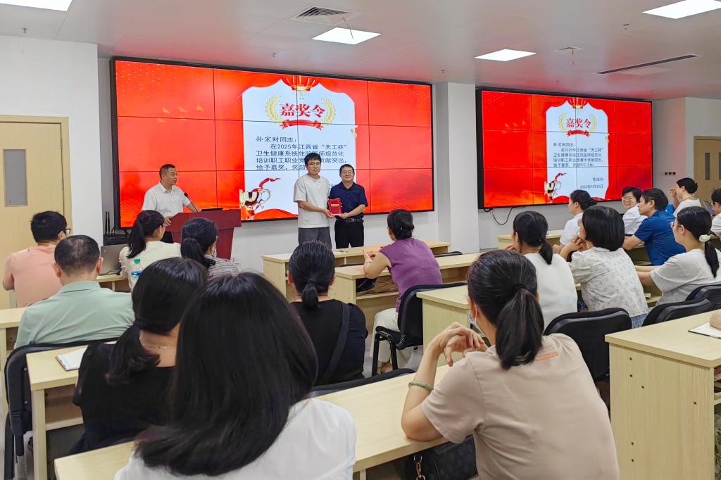 期间,我院全科专业基地组织召开教研室会议。会议由教学主任郑小刚主持,总结第三季度教学工作,部署第四季度工作,表彰“2025年江西省天工杯卫生健康系统住院医师规范化培训职工职业竞赛”中表现突出的全科指导老师李翌和全科住培学员孙宏财予以奖励,激励全体师生以他们为榜样,不断提升教学与学习质量。