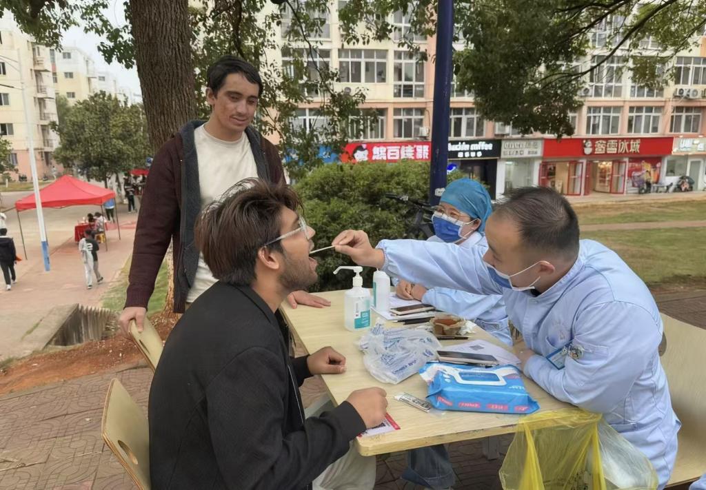 下午,活动转至北区第二食堂门口,气氛依旧热烈。几位外国留学生被吸引并主动参与检查,在志愿者协助下,他们欣然接受服务。来自印度的留学生在检查后称赞:“这样的活动非常棒!检查很专业,而且完全免费,让我感受到了实实在在的关怀。医生还教我如何正确使用牙线,这对我帮助很大。”
