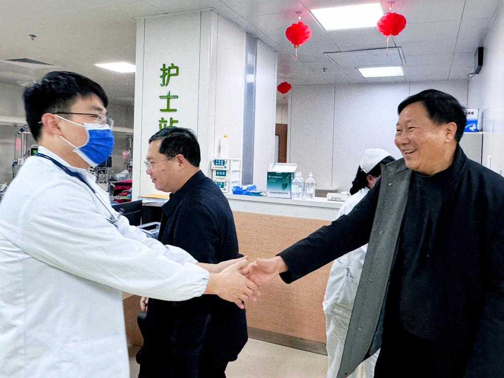 在重症监护室,院领导看望了正在忙碌的医护人员,大家纷纷表示:“春节期间患者数量较多,但值班医护人员都做好了充分准备,将全力以赴保障医疗安全。”