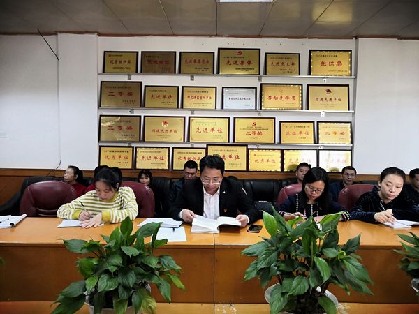 首先,组织委员彭建兵同志带领大家一起学习了《习近平关于“不忘初心、牢记使命”论述摘编》金句之《中国共产党的初心和使命,就是为中国人民谋幸福,为中华民族谋复兴》和《新时代中国共产党的历史使命》《用新时代中国特色社会主义思想武装全党》内容。支部书记周剑琴要求大家在支部微信群内继续学习以上内容,并再次通报了支部“学习强国”平台的学习情况。