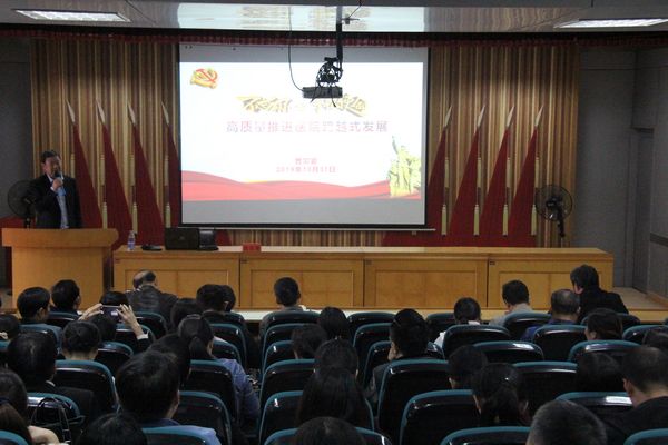 10月31日下午,院长曾常爱在临床医学院图书馆六楼会议室为全院全体党员上“不忘初心、牢记使命”主题教育专题党课,将我院主题教育活动引向深入。