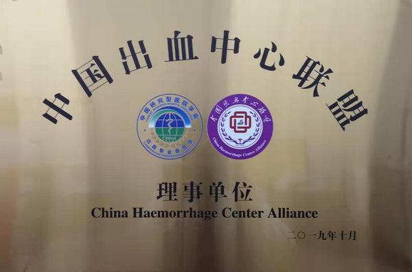 近日,我院获得中国出血中心联盟授牌,正式成为中国出血中心联盟理事单位。