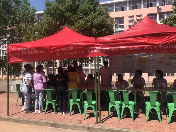 井冈山大学口腔医学专业师生积极响应国家及中华口腔医学会号召,在吉安市口腔医学会、井冈山大学附属医院口腔科等单位的大力支持和帮助下,在井冈山大学二食堂旁首次组织开展“全国爱牙日”校内口腔健康宣传义诊活动。同时采取海报、传单等多种宣传形式,并设置调查问卷和互动抽奖等环节,提高义诊的趣味性和民众参与的积极性,旨在提升大众口腔健康素养,营造有利于口腔健康的社会环境。(口腔科)