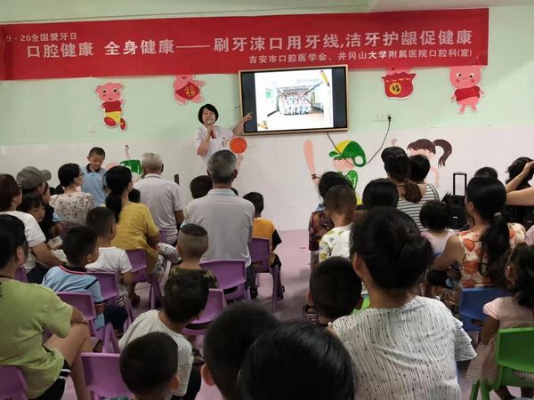 17日下午,由我院口腔科副主任医师王蔚、主治医师胡静、主治医师熊成玲带队分为三组分别来到永叔路小学、吉安师范附属小学、阳明路小学以及吉美幼儿园与学校联合开展了一场别开生面的爱牙知识讲座。