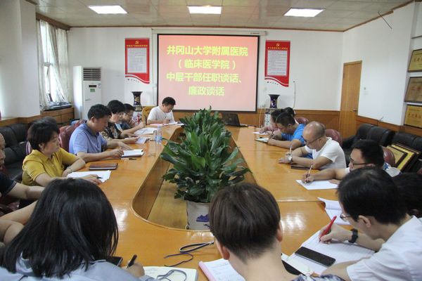 9月21日上午,我院在临床医学院行政楼三楼会议室召开中层干部任职谈话、廉政谈话座谈会,党委书记张波对中层干部作了任职谈话,纪委书记谢小帆对中层干部作了廉政谈话,党委副书记王政华主持,中层干部参加。