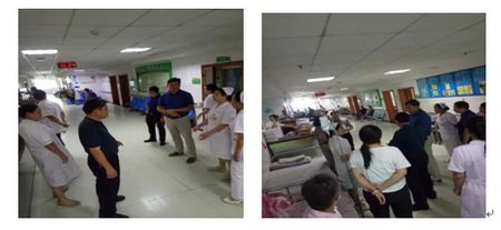 伍忠根来到病区详细询问了解医护人员国庆期间值班情况后指出广大医务人员要强化安全意识,在思想上高度重视,严格执行值班值守制度,确保医院安全生产和消防安全万无一失。