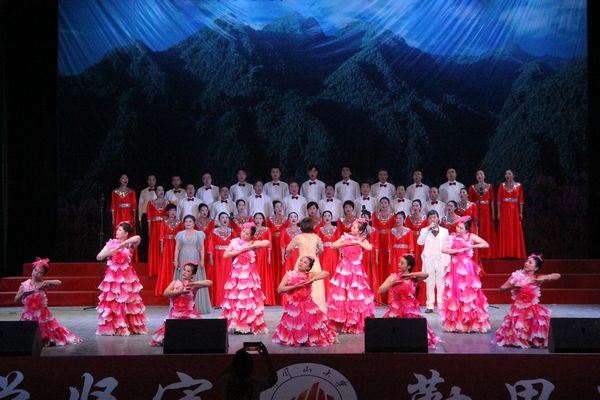 为深入学习贯彻习近平新时代中国特色社会主义思想,热烈庆祝新中国成立70周年,热情讴歌新中国光辉历程和伟大成就,激发广大教职工爱党、爱国、爱校和担当新时代的奋斗热情,增强教职工队伍凝聚力,促进学校转型发展,9月29日晚上,井冈山大学在学生会堂举办庆祝新中国成立70周年教职工校歌红歌合唱比赛。 经过全体队员的共同努力,我院喜获比赛三等奖。