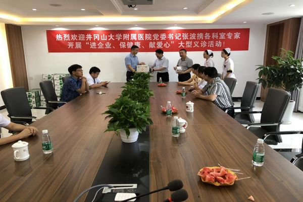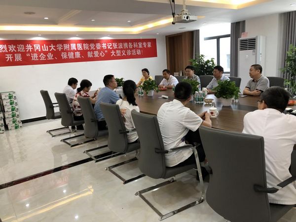 公司领导为了确保健康生产向张波书记提出希望医院为员工们健康服务开通绿色通道,初步达成井冈山大学附属医院为井冈山惊石农业科技有限公司的定点医疗、定点健康体检单位。