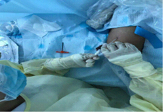 PICC专科护士在患者到达我院时进行再次评估后,决定在ECG定位辅助超声引导下应用MST技术的基础上,运用今年静疗专业先进的改良送鞘技术为患者置入PICC。
