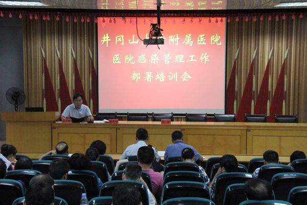 6月24日下午,我院在临床医学院图书馆六楼召开医院感染管理工作部署培训会。会议由副院长伍忠根主持,院领导、中层干部及副高以上人员参加。