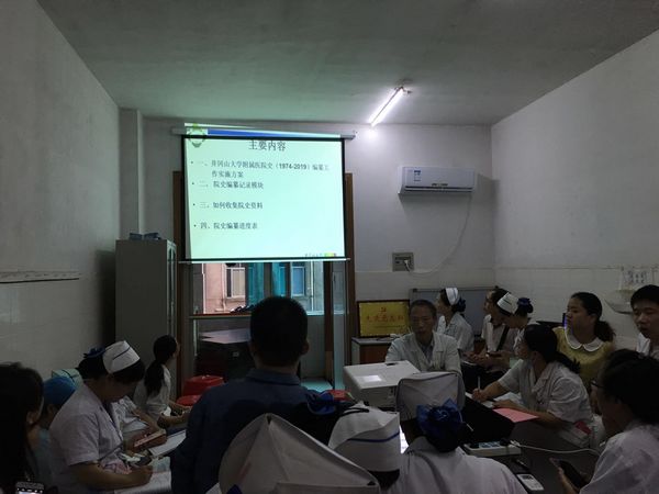 接下来,陈小英护士长对全体参会人员进行了培训,培训主要有四项内容:1.传达院史编纂工作实施方案相关内容;2.展示院史编纂记录模块;3.收集院史资料的相关方式方法;4.院史编纂工作进度安排。同时,会上还就院史编纂工作的开展及推进,征询了各科室的意见和建议。