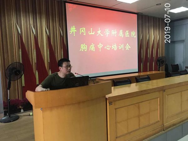 本次培训首先由心内科主任、胸痛中心委员会副主任颜程光进行授课,他就“成立胸痛中心的目的与意义”“区域协同急救网络的流程优势 ”,特别是对“如何建设胸痛中心”进行了详细的解读。