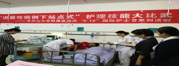 为庆祝2019年“5•12”国际护士节,加强护士队伍建设,提高护理服务质量,4月29日,护理部联合医院工会在住院部三楼,举行庆2019年“5•12”国际护士节系列活动——“进展性病例下站点式”护理技能大比武。来自全院各临床科室共31名护士参加了此次大赛。赛中,院党委副书记王政华亲临赛场,为选手加油助威! 经过一天紧张激烈的角逐,最终评选出10名技能标兵。