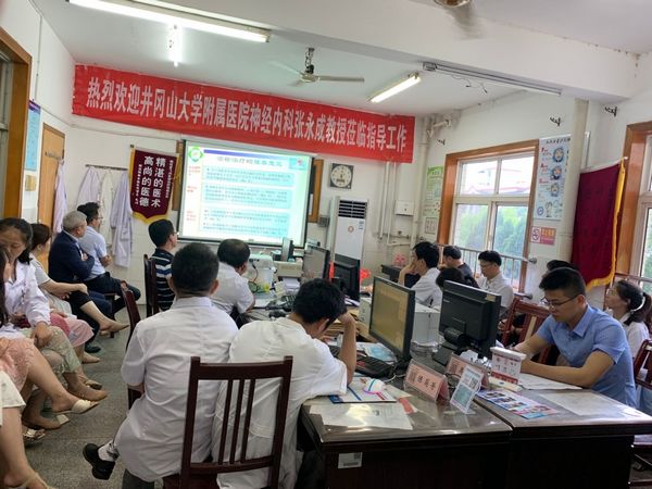 3月30日下午,我院神经内科张永成主任、欧阳至吉主任、戴菁医师等卒中团队受邀前往泰和县人民医院,针对卒中中心建设进行交流指导培训,受到该院神经内科全体医务人员及广大患者的热烈欢迎。
