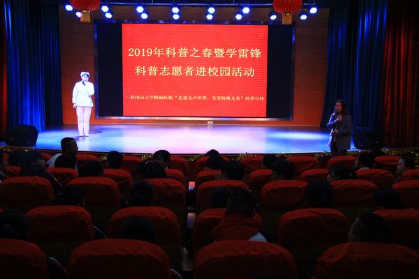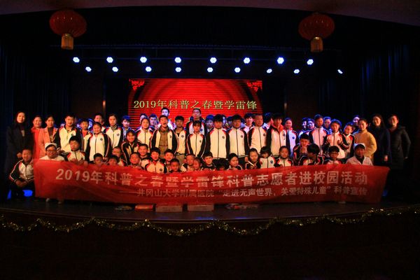 3月18日下午,护理部一行6人来到吉安市特殊教育学校,在学校礼堂向在校的老师及学生科普急救知识,并给他们带去了玩具。