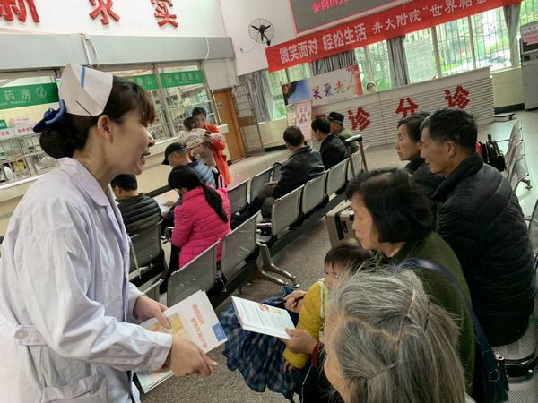 2019年4月11日是第23个“世界帕金森日”。神经内科举办了主题为“微笑面对 轻松生活”的义诊活动。当天一大早,来自全市各县区的帕金森患者及家属冒着春寒细雨赶到现场参加活动,和神经内科医护人员进行了一对一的交流咨询。医护人员对他们的药物方案、康复训练、心理疏导、家庭护理等方面给予了细心指导。本次义诊共发放宣传册60余份,测量血压80余次,52位帕金森病友及家属通过扫二维码加入了“井大附院神经内科帕金森病友交流群”。