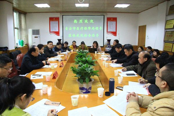 为进一步加强基本医疗保险定点医疗机构管理,促使医疗行为规范,确保医保基金安全,根据《吉安市医疗保障局关于开展2018年度医疗保险定点医疗机构年度考核和分级管理评定工作的通知》,2月21日上午,吉安市医疗保障局一行10人在刘建平局长的带领下莅临我院检查指导,我院领导班子全体成员和医保工作人员约20人参加了调研座谈会并接受了全面检查。