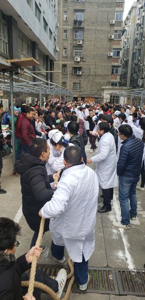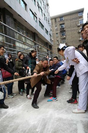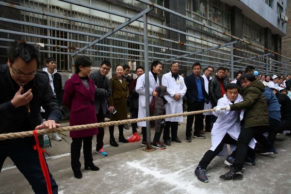 为了庆祝元旦佳节到来,丰富职工的业余生活,增强职工间的交流和团结协作精神,加强职工的凝聚力和自身体质,我院于12月24日下午举办了一场激动人心、别开生面的职工拔河比赛。