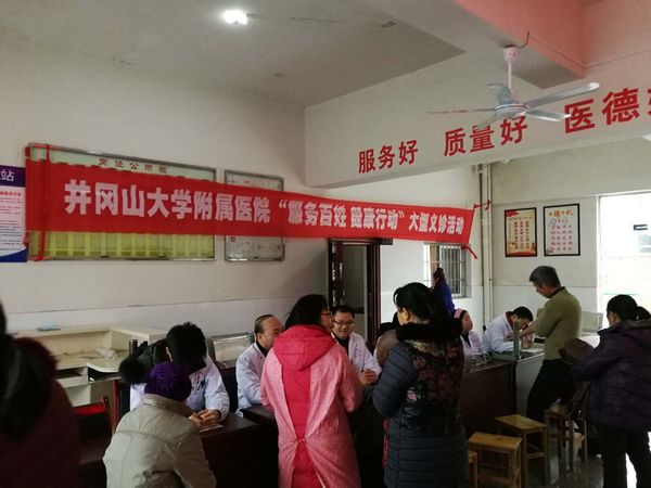 为充分发挥党员先锋模范作用,更好地体现党和群众的密切联系,增强居民医疗健康意识,传播健康医疗文化,12月16日,外科二支部利用休息日到青原区东固开展“接受革命红色教育,送医下乡,服务百姓”主题教育党日活动。副院长邹亦平以及来自普外、胸外、脑外、泌外、中医、肛肠等科室10余名医护人员参加了此次义诊。