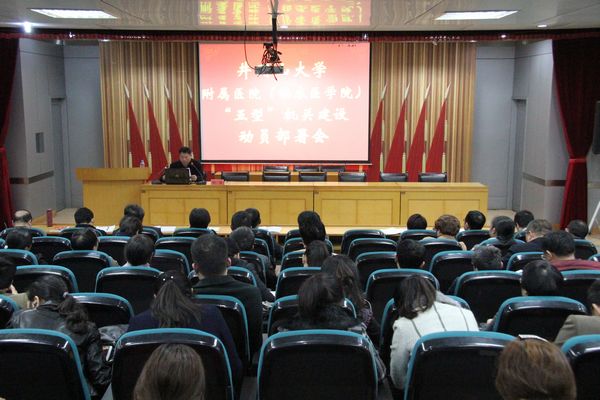 11月14日下午,我院在临床医学院图书馆六楼学术报告厅召开“五型”机关建设动员部署会。院党委书记张波主持并传达学习了省卫生计生委关于大力开展忠诚型创新型担当型服务型过硬型政府建设加快推动江西卫生计生事业高质量跨越式发展的文件精神,并就我院大力开展“五型”机关建设进行了动员部署。全体院领导、中层以上干部、全体党员参加了会议。