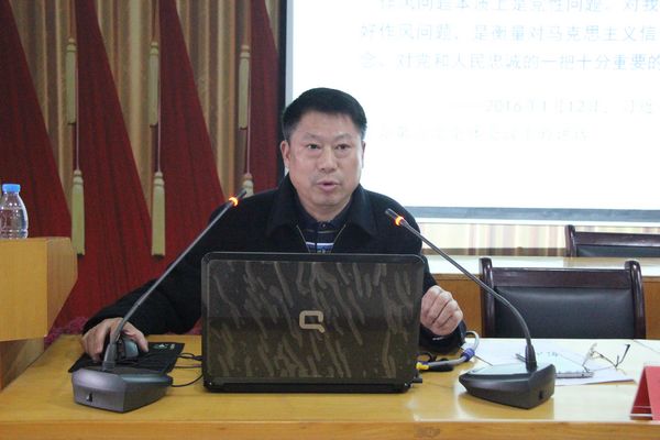 张波书记从“什么是作风?什么是作风建设?”着手,向大家介绍了党从中央苏区时期起开展的作风建设历程,重点介绍了党的十八大以来,以习近平同志为核心的党中央全面从严治党,抓住作风建设这条主线,着力从作风建设这个环节突破,从制定和落实“八项规定”入手,相继开展党的群众路线教育实践活动、“三严三实”专题教育、“两学一做”学习教育,集中整饬党风,严厉惩治腐败,着力净化党内政治生态,党的作风建设取得新成就。