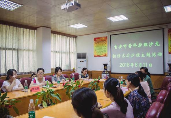 借此东风,为进一步提高吉安市骨科护理专科发展,为吉安市骨科护理同仁提供一个学习交流的平台,8月11日我院特举办这次以“髋关节置换翻修术后护理”为主题的骨科护理沙龙活动。特别邀请了南昌大学第一附属医院骨科护理团队:江西省骨科护理专业委员会副主委闵燕、骨科护士长余其春、骨科专科护士熊丽娜到场授课。来自全市各区县13家医院20余名骨科护士长及护理骨干参加了本次活动,会议由我院外科总护士长肖小燕主持。