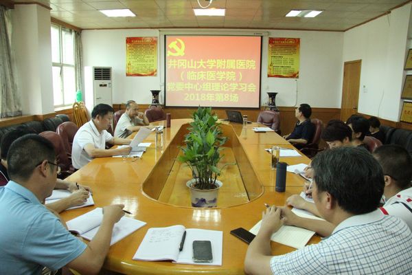 9月18日下午,井冈山大学附属医院(临床医学院)举行党委中心组理论学习会,这是今年第八场学习会,根据院党委中心组理论学习计划安排,本次为规章制度法律条文专题学习。院领导及各支部书记参加,党委书记张波主持。