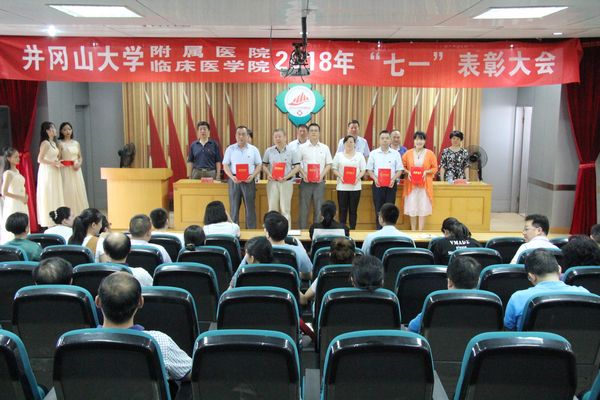 在中国共产党成立97周年之际,6月30日上午,井冈山大学附属医院(临床医学院)在临床医学院图书馆六楼学术报告厅召开2018年“七一”表彰大会,院领导、中层以上干部、党支部书记、全体党员参加,党委副书记王政华主持。会议旨在表彰近年来医院(学院)党的建设和事业发展中涌现出来的先进集体和优秀个人,进一步统一思想、凝聚力量、振奋精神,营造深化作风建设优化医院(学院)环境的浓厚氛围。