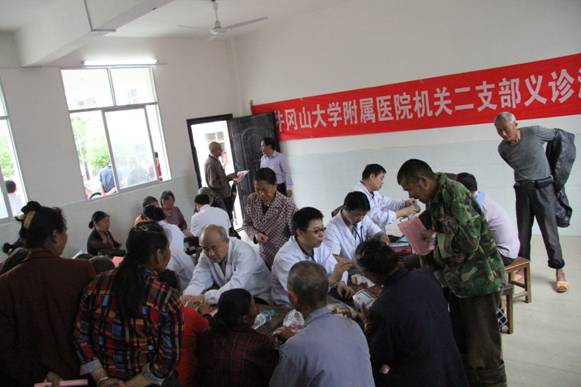 为贯彻落实党的十九大精神,践行健康中国战略,服务人民群众健康,5月6日,受井冈山大学党委和附属医院党委委派,附属医院机关第二党支部到学校挂点扶贫村——青原区天玉镇塘尾村开展免费体检、送医送药及发放健康知识小册子等活动。
