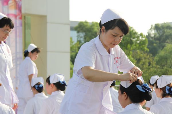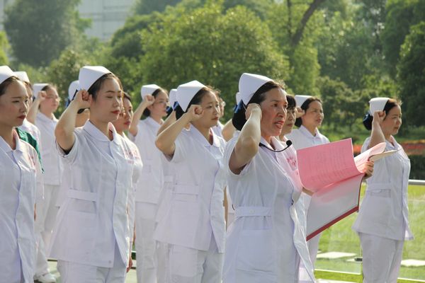 仪式中,伴随着音乐,授帽者及授帽对象按照预先排演的位置站好,8名资深护士为24名年轻护士逐一授帽,传承南丁格尔精神,庄严而神圣。授帽结束后,老中青三代护理人重温了护理誓言,护理部主任肖瑾瑛带领全体护士宣誓:“我志愿献身护理事业,奉行革命的人道主义精神,坚守救死扶伤的信念,履行“保存生命、减轻痛苦、促进健康”的职责。遵守护士的职业道德规范,像南丁格尔那样,以一颗同情心和一双愿意工作的手,以真心、爱心和责任心对待每一位病人。”一句句铿锵有力的誓言让大家深刻感受到自己所从事的这份职业的神圣感、使命感和责任感。