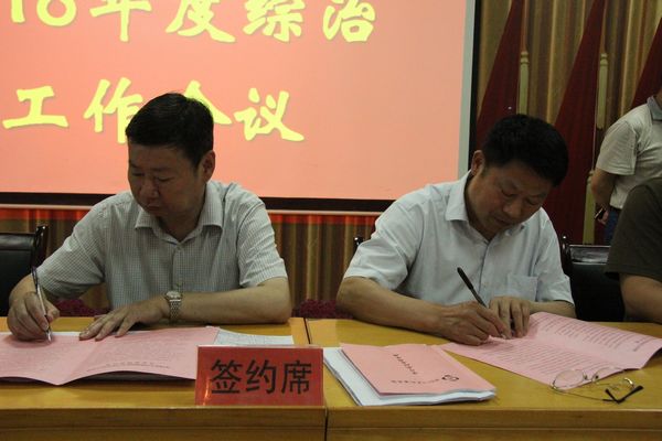 科室负责人代表郭欢、沈建忠签订了社会治安综合治理责任书。