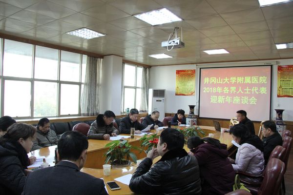 2月6日上午,井冈山大学附属医院在临床医学院行政楼三楼会议室召开2018年各界人士代表迎新年座谈会。院领导、退休人员代表、党外人士代表、转业军人代表、民主党派代表、医师代表、护士代表、相关职能科室负责人代表参加,党委副书记王政华主持。院领导与各界人士欢聚一堂,共叙情谊,共迎新春,共话改革,共谋发展。