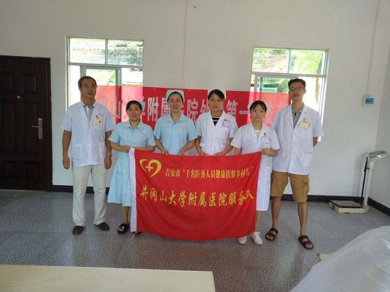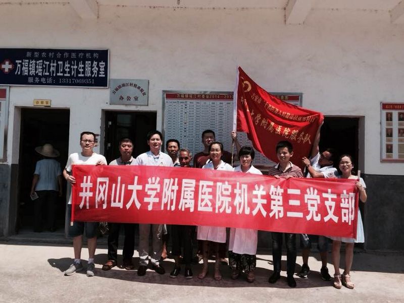 “天气热,大家不要拥挤,你们放心,不管忙到几点,就是剩一个人,专家都不会走的。”,“大妈,你的血压还是高哇,饮食要清淡点,降压药要坚持服用,我给你开个单子,你到旁边去免费领药。”8月5日上午,井冈山大学附属医院机关第三党支部联合外科第一党支部组织的“千名医务人员健康扶贫乡村行”大型义诊活动在万福镇瑶江村和大杏村卫生计生服务室场内如火如荼地进行着。