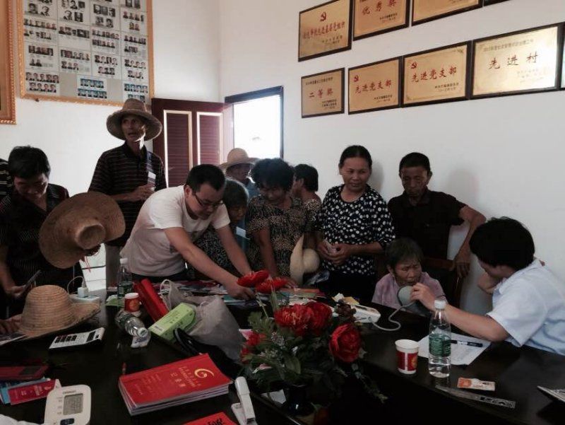 活动现场,义诊桌椅一字摆开,现场群众多而不乱,气氛热烈。9点义诊正式开始,村民们自觉排队,等待来自井冈山大学附属医院的专家为自己看病。活动中,医务人员为村民提供常规体检服务,为村民们提供了常用应急药物,以备不时之需。同时对村民进行健康指导,纠正村民不正确的饮食习惯和服药方式,让村民做到提早预防,及时治疗。活动现场发放了疾病知识的宣传手册,提高村民对疾病的认识水平。