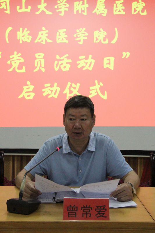 9月29日下午,我院在临床医学院图书馆六楼会议室举行“党员活动日”启动仪式,院长曾常爱宣读了学校下发的《关于做好“党员活动日”工作有关事项的通知》,副院长曾晓元主持,院领导、各支部书记及院中层以上干部参加。