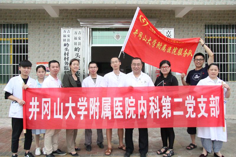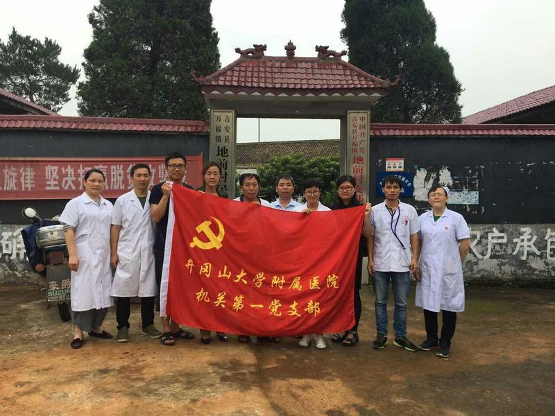 7月1日,建党节,机关一支部、内科二支部组织党员前往吉安县万福镇地前村、岭头村开展“千名医务人员健康扶贫乡村行”义诊活动,来自内科、外科及护理部的医务人员组成了此次服务队。