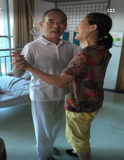 经过三个月的康复治疗,我自己可以慢慢走路了,生活也能大部份自理了。7月11日我办理了出院手续,我突然有个大胆的想法,想为我的医生、护士、康复师,为我的家人,为我的病友们献上一曲交谊舞,于是我和老伴在康复室翩翩起舞。