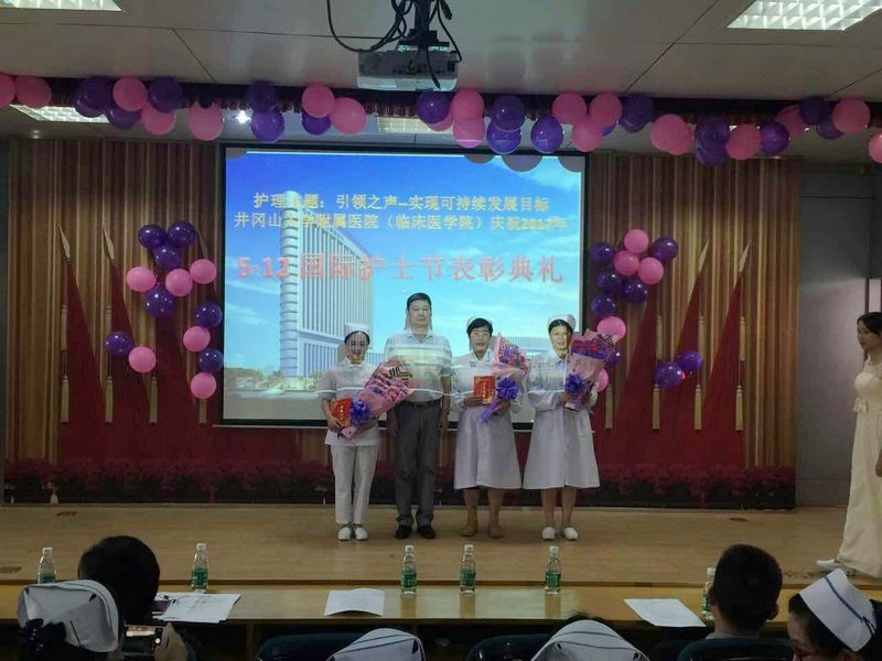 大会对“我最喜爱的健康卫士”方全凤、江西省优秀护理工作者陈小英、“江西省百名优秀护士”林越凤、2016—2017年度“优秀科护士长”、2016—2017年度“先进护士”、“静脉输液操作比赛英语会话交流”技能标兵及优胜奖获得者进行了表彰,院领导班子成员为获奖者颁奖,并向全院护士致以节日的祝福。其中,ICU护士长方全凤代表护士发言,讲述了自己在ICU工作的亲身经历,感悟到:“坚持以高度的责任心,良好的服务态度为病人提供优质服务,把爱心献给每一位患者,做患者生命的守护天使。”