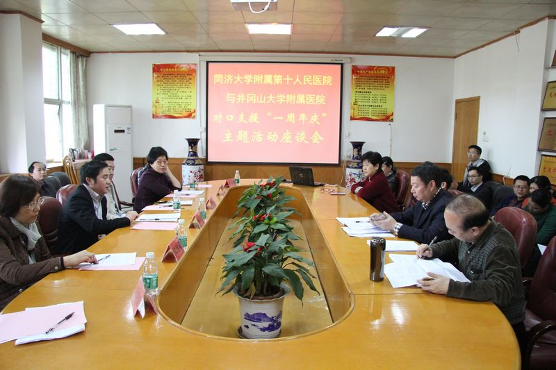 3月27日下午,我院在临床医学院行政楼三楼会议室举行同济大学附属第十人民医院与我院对口支援“一周年庆”主题活动座谈会。会上,副院长邹亦平对两院自签订合作协议以来所开展的一系列工作作了总结,并对2017年的帮扶工作作了展望,希望十院能够在技术层面、科室建设、学科建设等方面对我院给予大力协助。十院副院长吕中伟及我院院长曾常爱分别代表双方作了表态性发言,希望两院的合作在已有的基础朝着美好的方向继续前进。