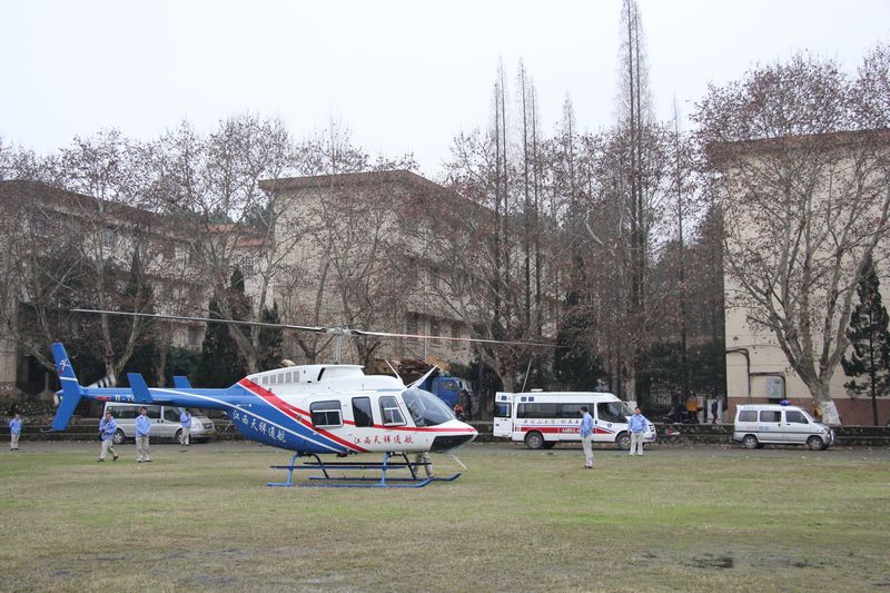 为了构建“地面+空中”的立体化救援网络,提高医院对突发医疗事件的响应时效,为突发事件中危重伤员及危重疾病患者抢救赢得宝贵的黄金救援时间。1月14日下午,我院联合江西天人生态股份有限公司举行了吉安市首次直升机空中救援演练。