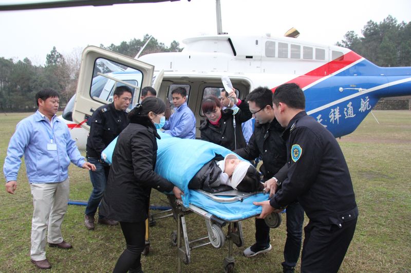 演练模拟,一位在交通事故中失血性休克的危重患者,因道路拥堵,无法转入医院进行抢救,必须启用直升机进行空中转运。接到命令后,天人生态立即启动飞机,做好起飞救援准备。井冈山大学附属医院1号急救车立即将患者运至江西天人厂区直升机起飞点,将患者转运至直升机,飞机起飞,飞往井冈山大学临时停机坪。降落之后,迅速与早在一旁等候的医护人员将患者运至2号急救车,2号急救车驶离现场,进行院内抢救。至此,演练结束。整场演练,天人生态股份有限公司工作人员与我院医护人员分工协作、相互配合、无缝对接,迅速、高效、精准地完成了此次演练。